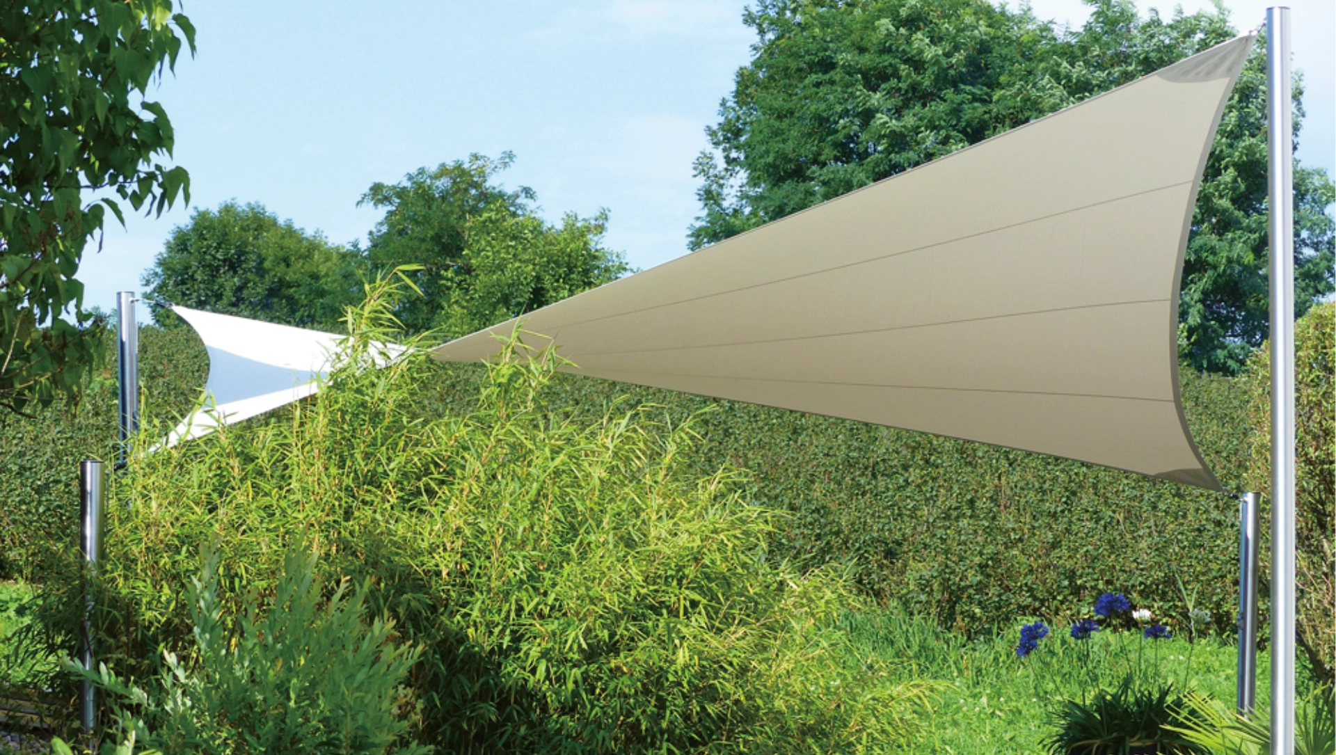 - Straff gespanntes Sonnensegel mit hoher Windstabilität