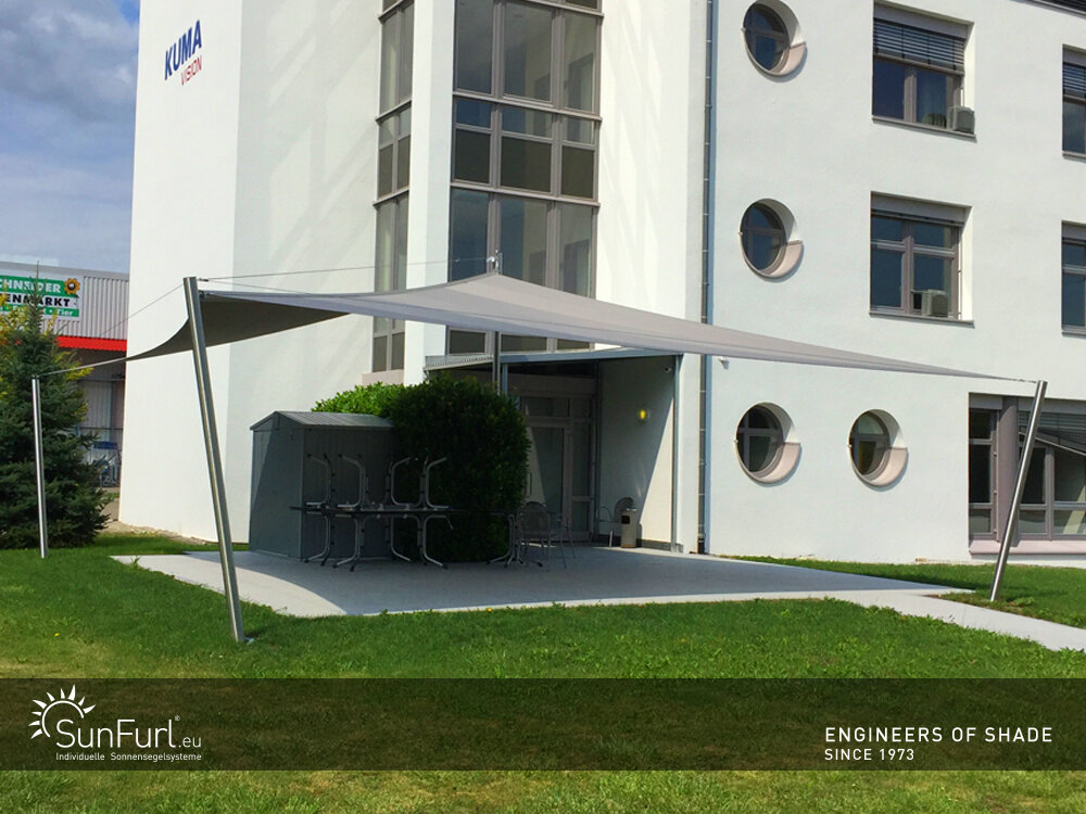 Aufgrund der großen Vorspannkräfte, steht das Segel sehr gut gespannt und faltenfrei. Bei entsprechend eingeplantem Gefälle kann das Segel ebenso als Regenschutz genutzt werden. Alle SunFurl® Sonnensegel werden von ausgebildeten Segelmachern hergestellt. Dadurch bietet SunFurl® Segeltücher in einzigartig hoher Qualität.